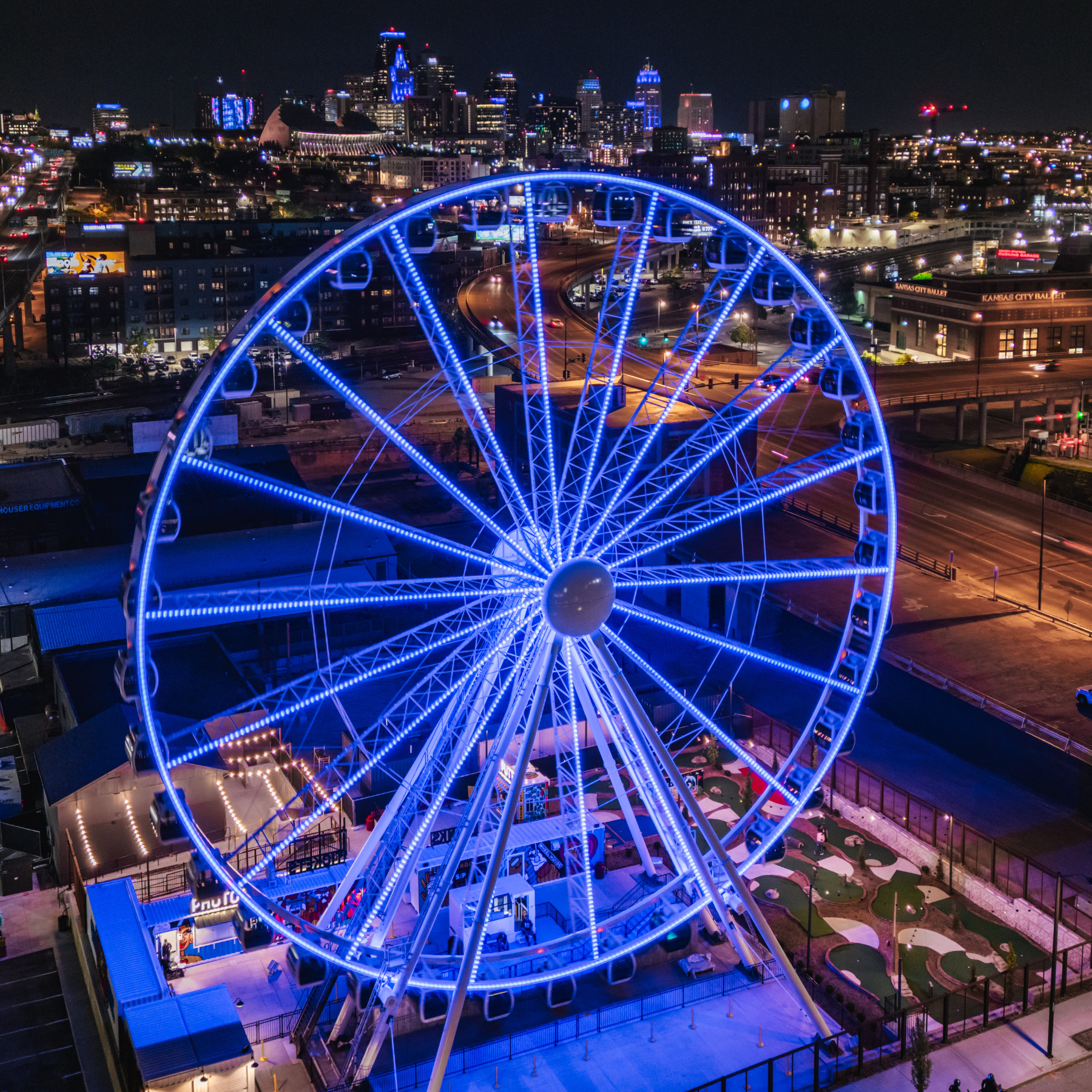 At the base of the wheel is Pennway Putt, a KC-themed 16-hole mini golf course where you can challenge friends and family to a little competition following your ride on the wheel!