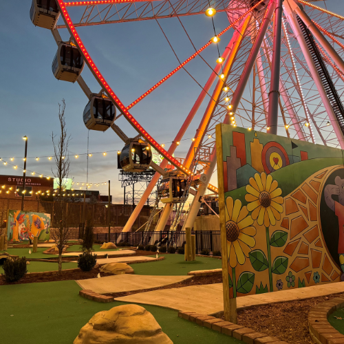 Mini Golf Gift Tickets: Only $13.99, valid through December 2025. Enjoy an exciting ride on the KC Wheel plus a fun round of mini golf.